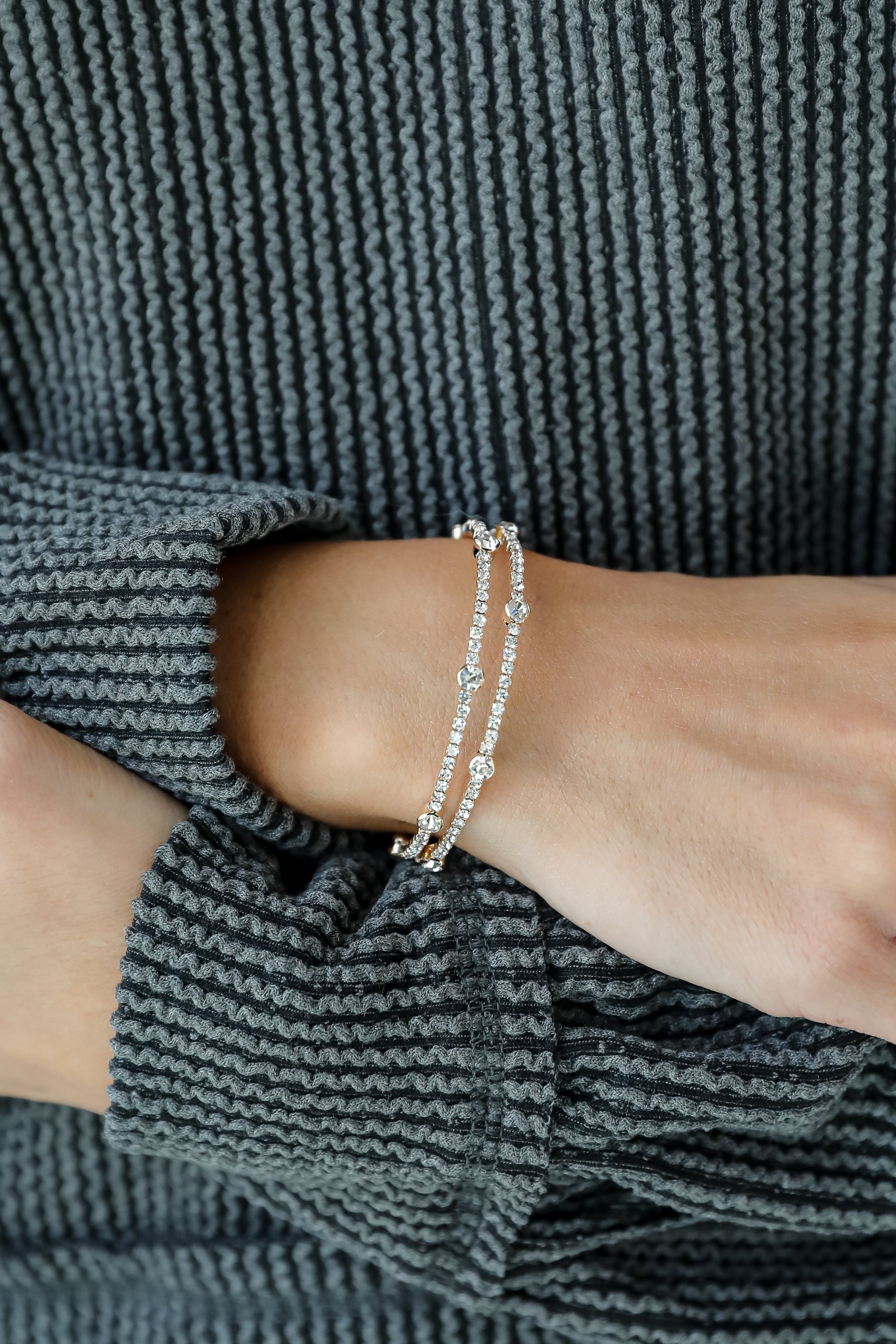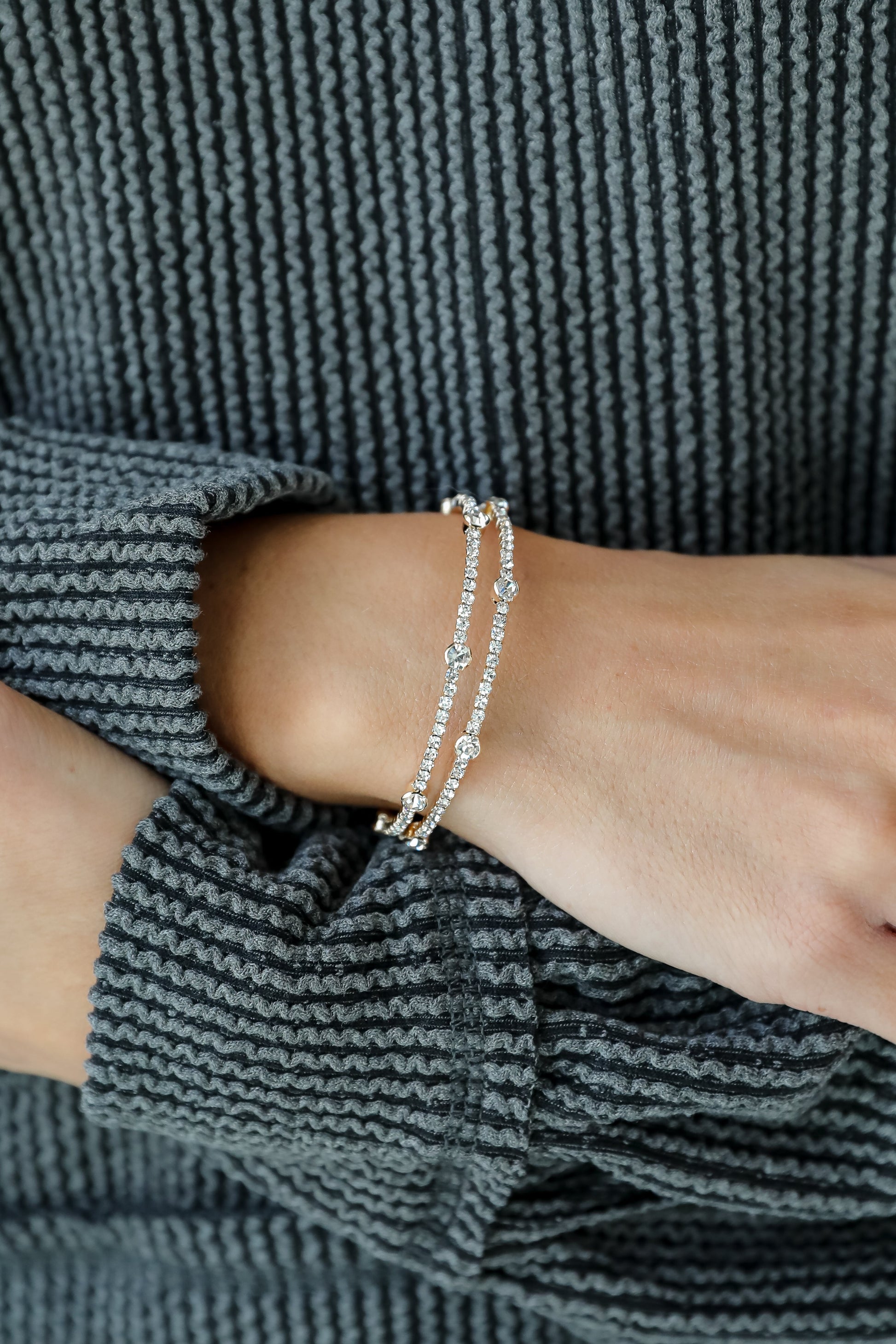 There's no telling how bright you'll shine with the Alexandra Gold Rhinestone Bangle Bracelet! This cute bracelet is made of a gold chain with rhinestones. Wear it on it's own or stacked with other bracelets. either way you'll love it!