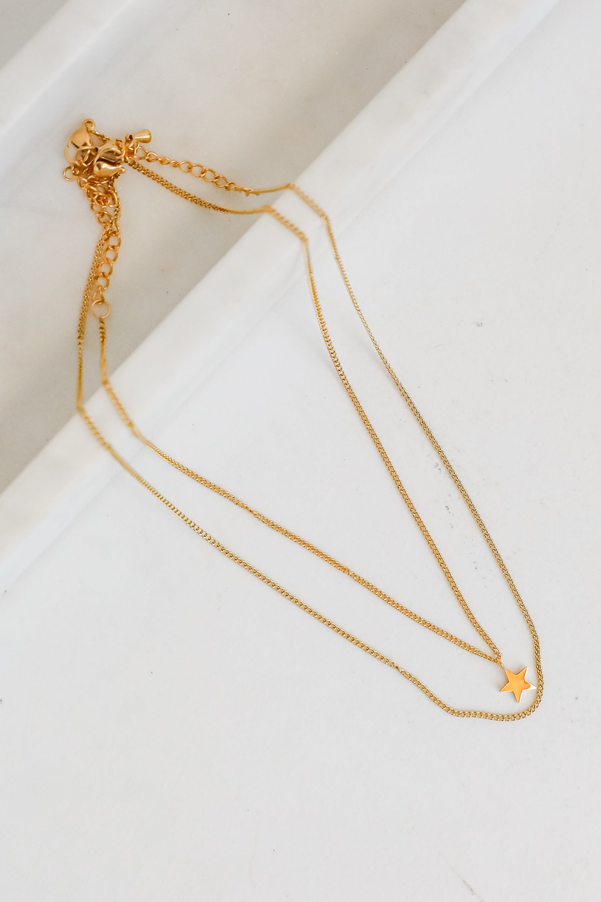 Everyone will be stopping and staring because the Alice Star Charm Layered Necklace is positively dazzling! This trendy necklace features two layers of chains with a star charm. Style the Alice Necklace with any outfit to instantly upgrade your look! Available in 2 colors.