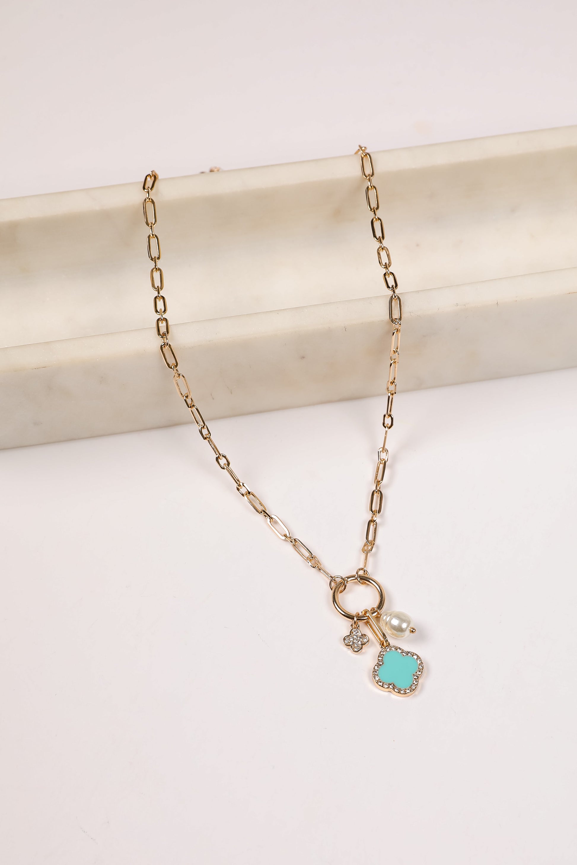 Luxurious accessories like the Amelia Quatrefoil Charm Necklace will make any look you create even easier to admire! This dainty necklace features a gold chain with quatrefoil charms and pearls. Style the Amelia Necklace with any outfit to instantly upgrade your look! Available in 2 colors.