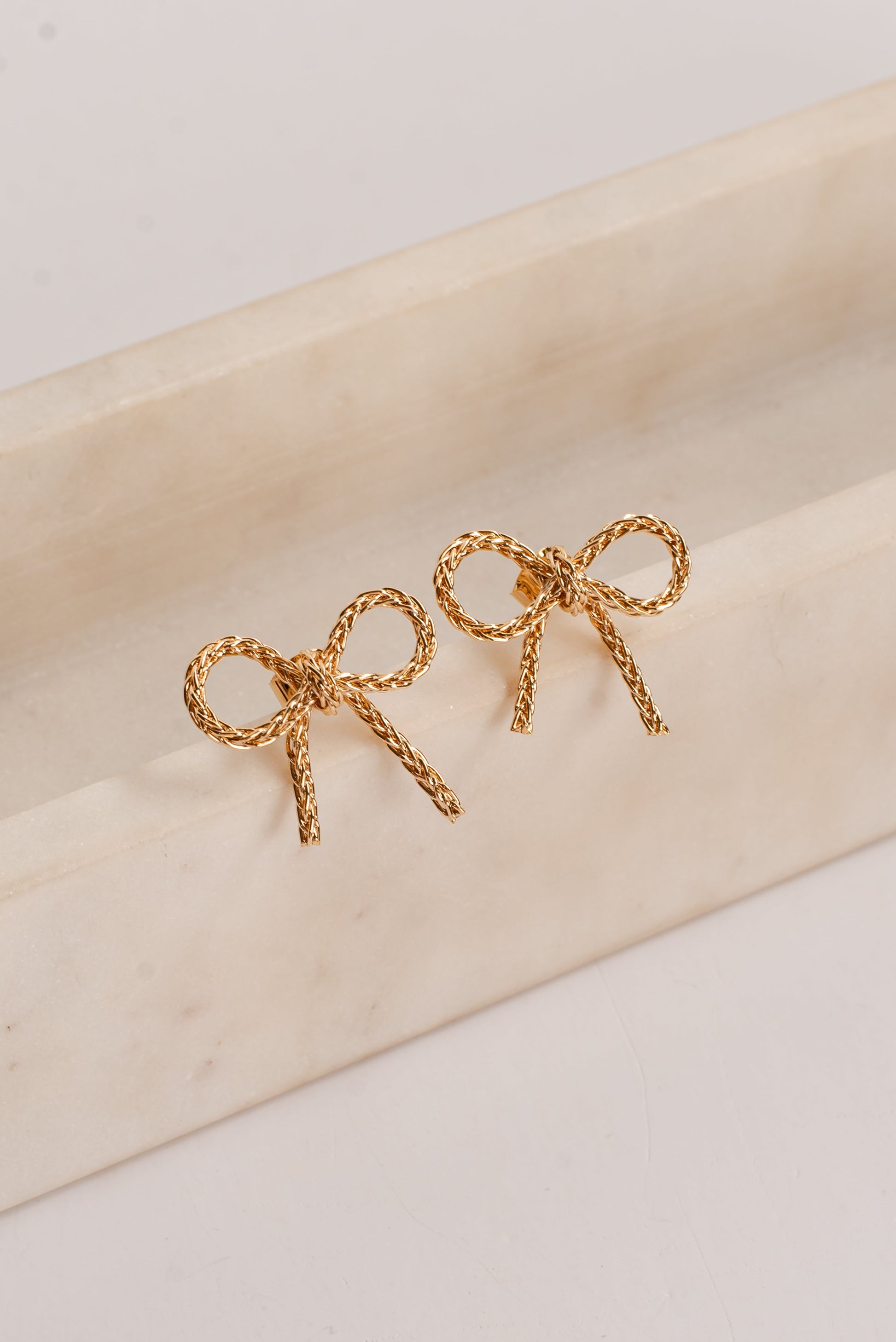 The Bianca Gold Bow Earrings are sure to draw in a crowd. while your natural charm will keep them wanting more! These dainty gold earrings feature a bow shape with a stud post back! Style the Bianca Earrings with a mini dress + heels for a girly look!