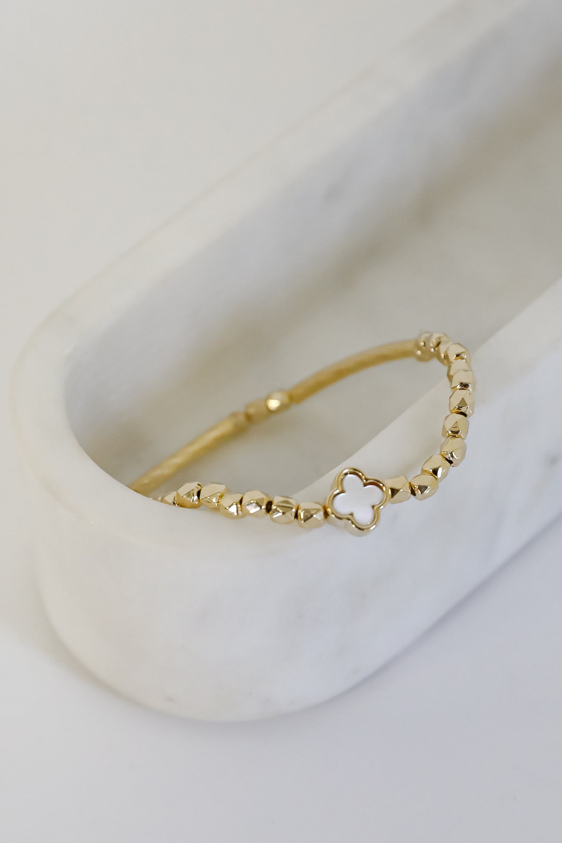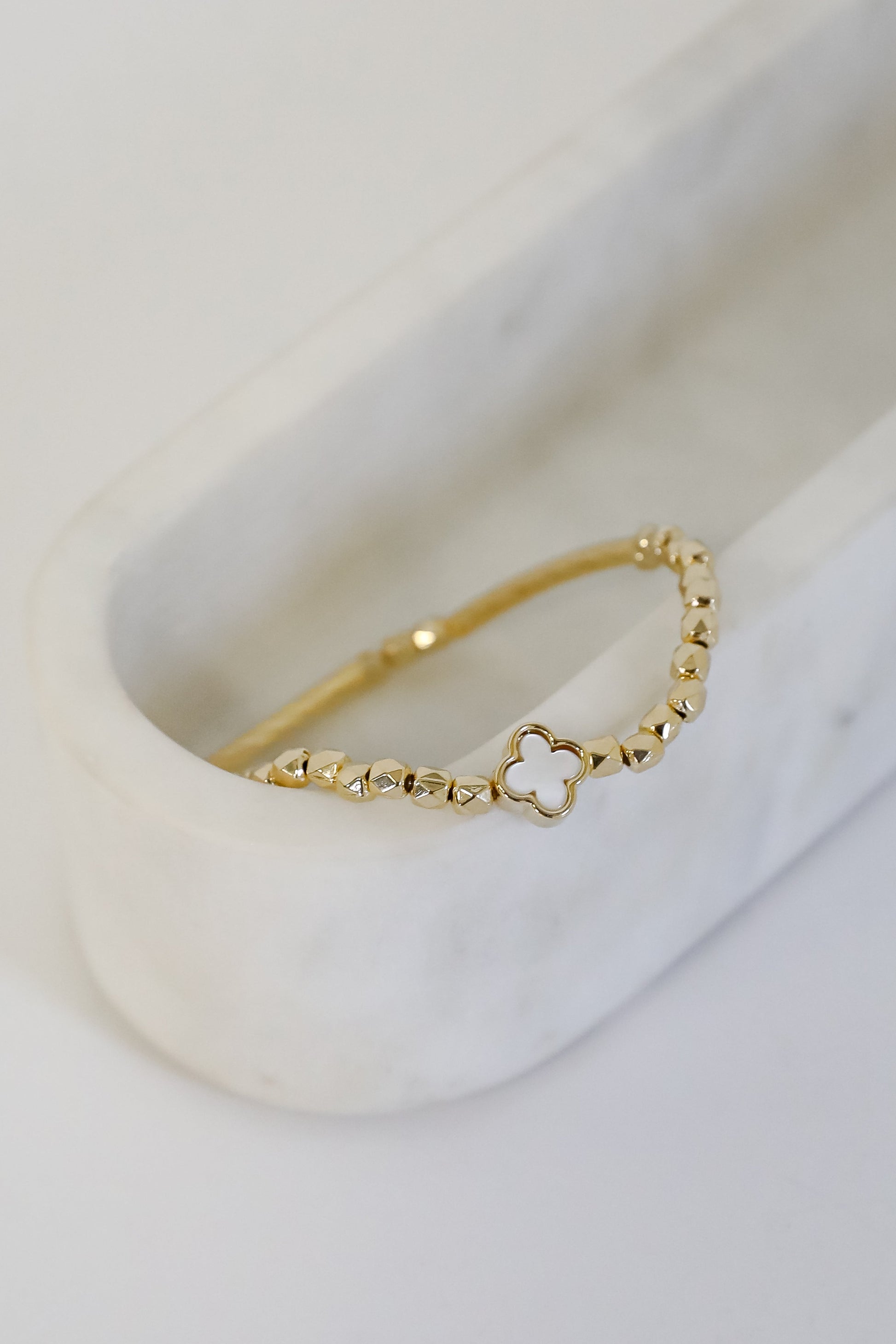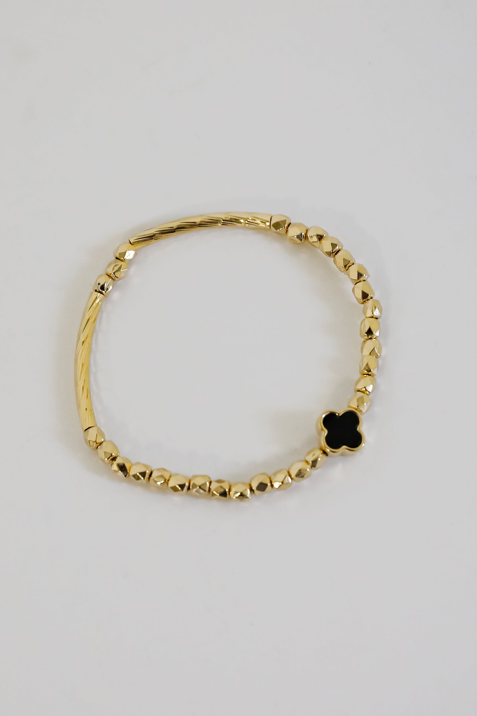 You can always count on the Diana Beaded Quatrefoil Bracelet to be your stylish plus one! This cute bracelet is made of gold beads and a quatrefoil charm. Wear it on its own. or stacked. either way you'll love it! Available in 2 colors.