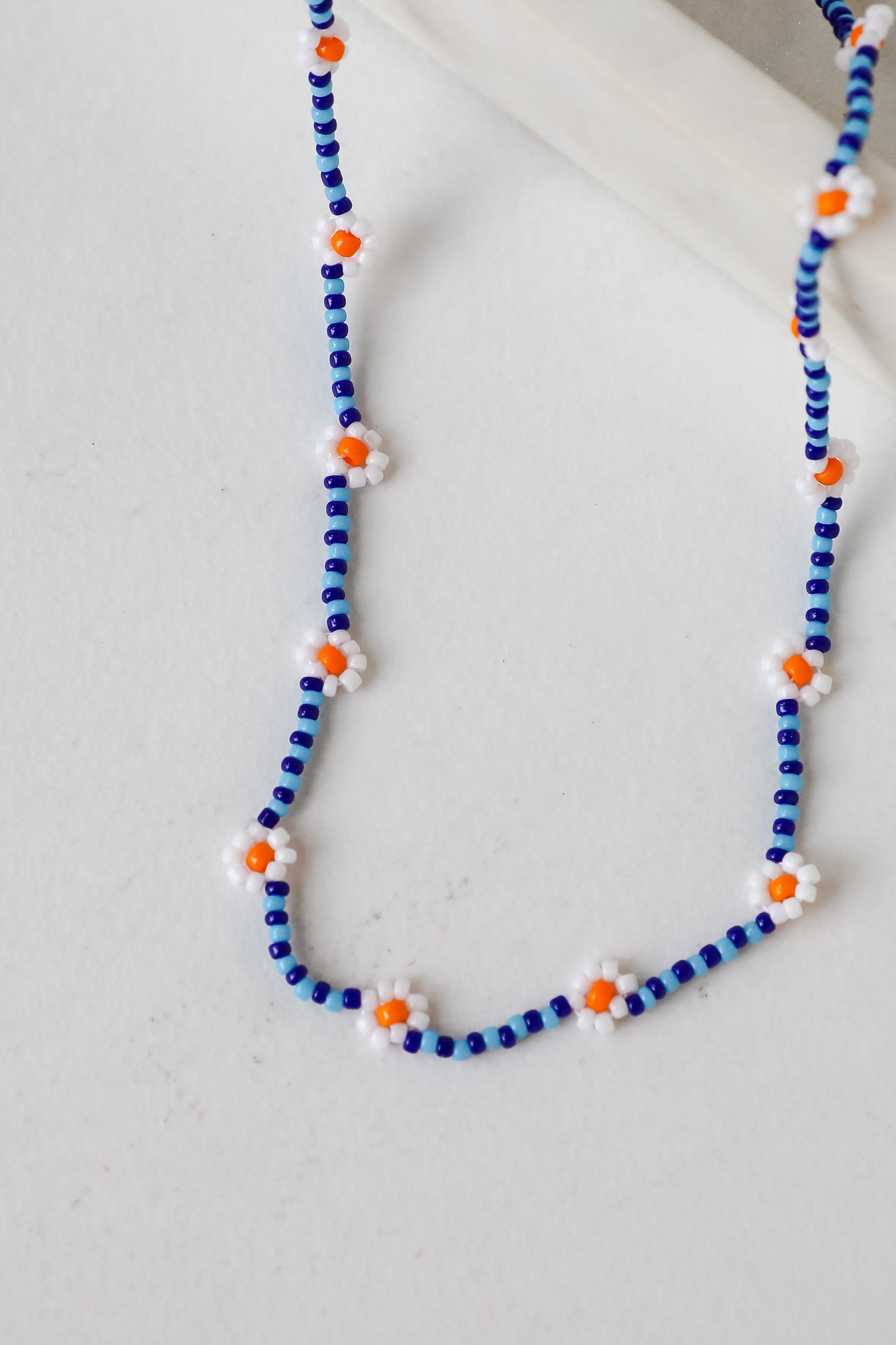 FINAL SALE - Haven Blue Beaded Daisy Necklace