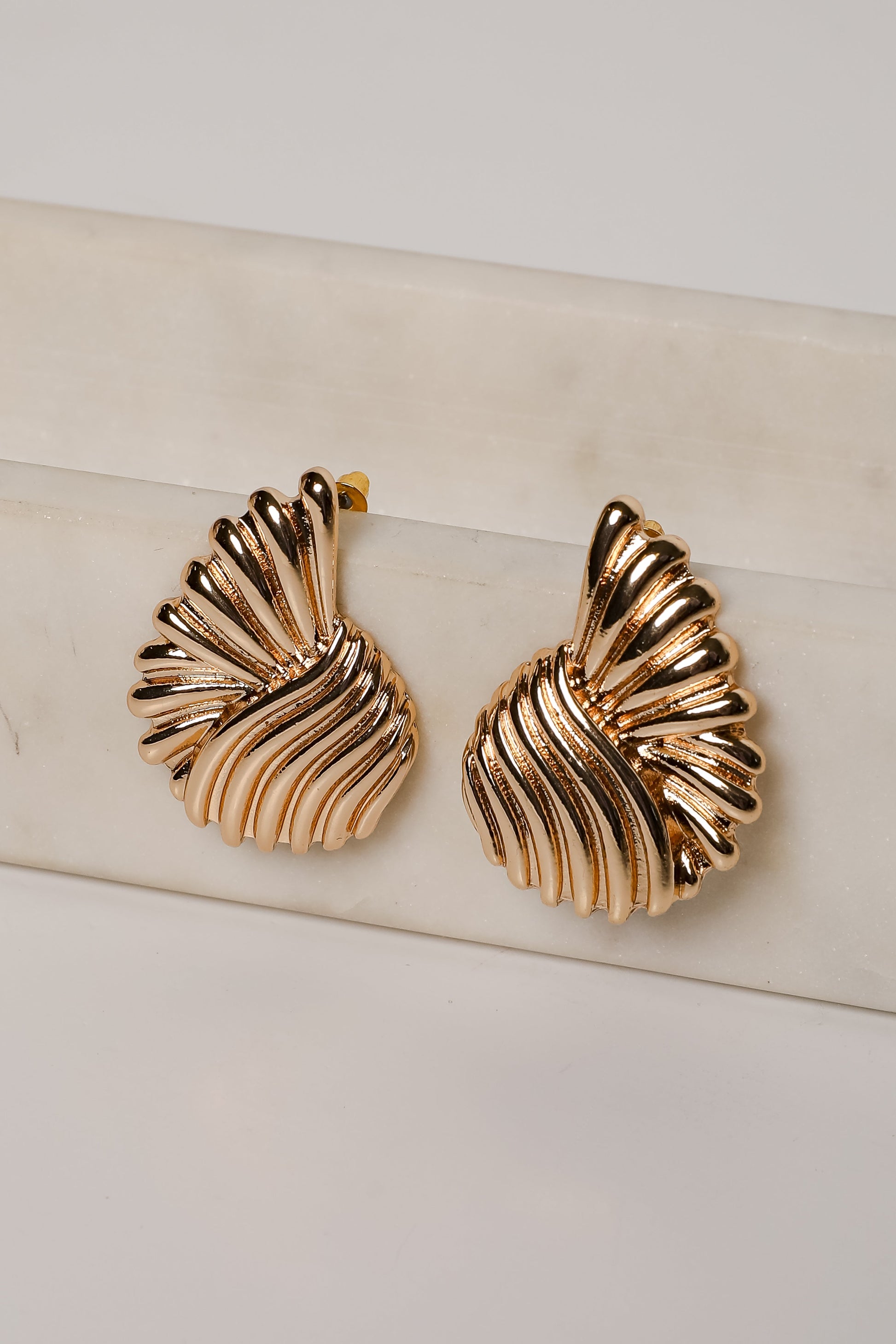The Kenzie Gold Textured Statement Earrings are the perfect addition to your everyday jewelry box! These cute gold earrings feature a textured abstract shape with a stud post back! Style the Kenzie Earrings with any outfit to instantly upgrade your look!