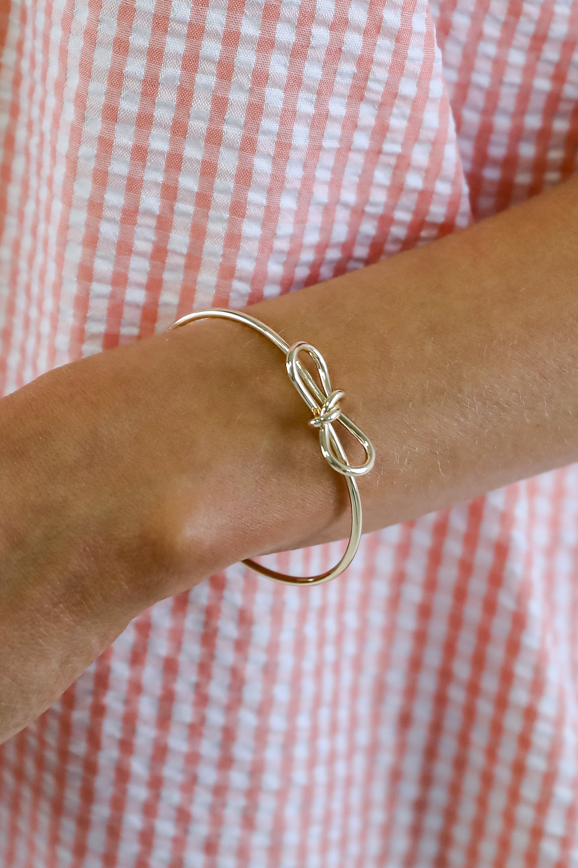 The Kinsley Gold Bow Cuff Bracelet can be styled with literally any look from your closet! This chic gold bracelet has a classic cuff design with a bow. Wear it on its own or stacked with other bracelets to instantly upgrade your look!
