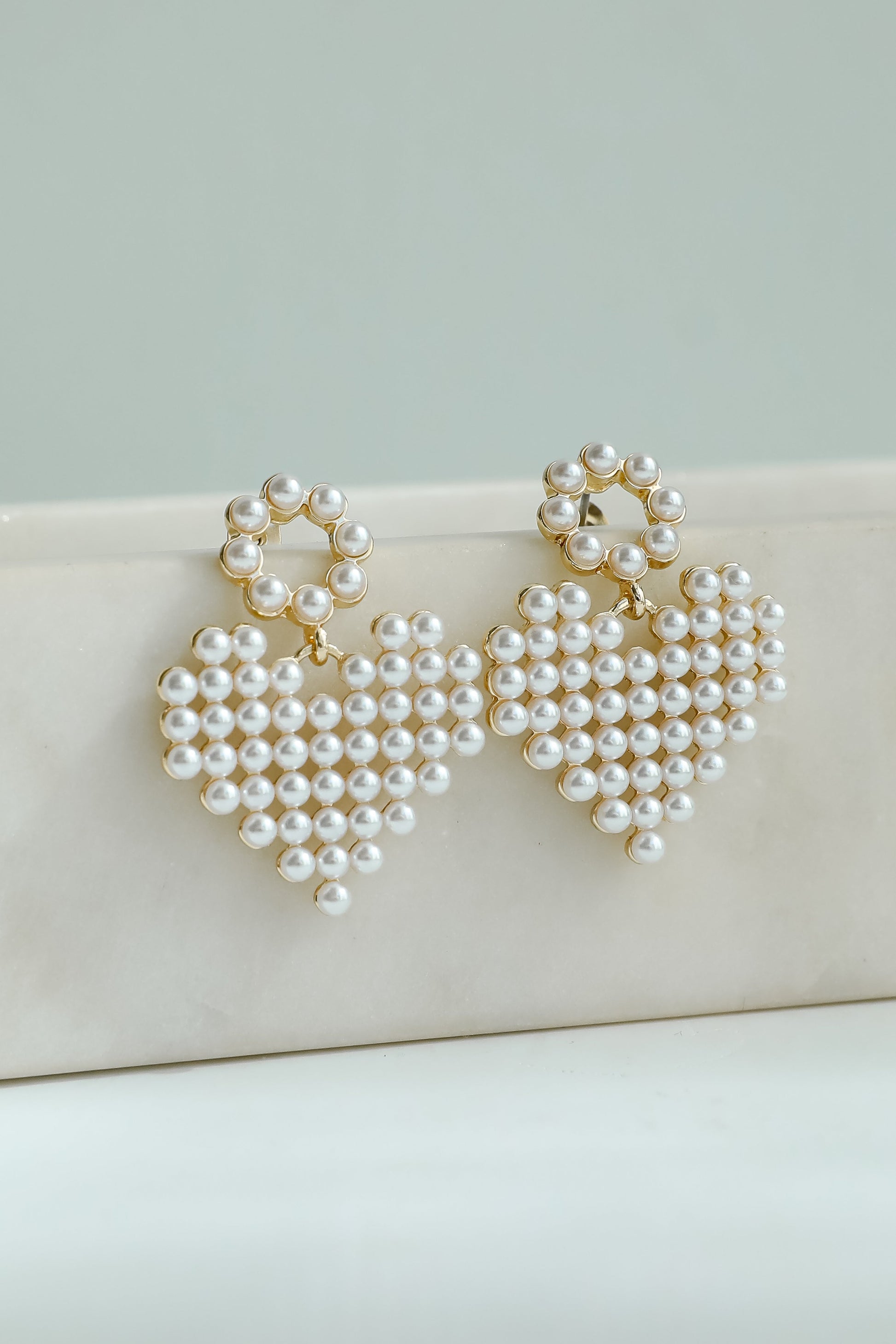 The Lennon Gold Pearl Heart Drop Earrings were made to ensure that all eyes are on you the moment you walk into the room! These chic earrings feature a stud post back + fall to a heart shape with pearls! Style the Lennon Earrings with any outfit for an elevated look!