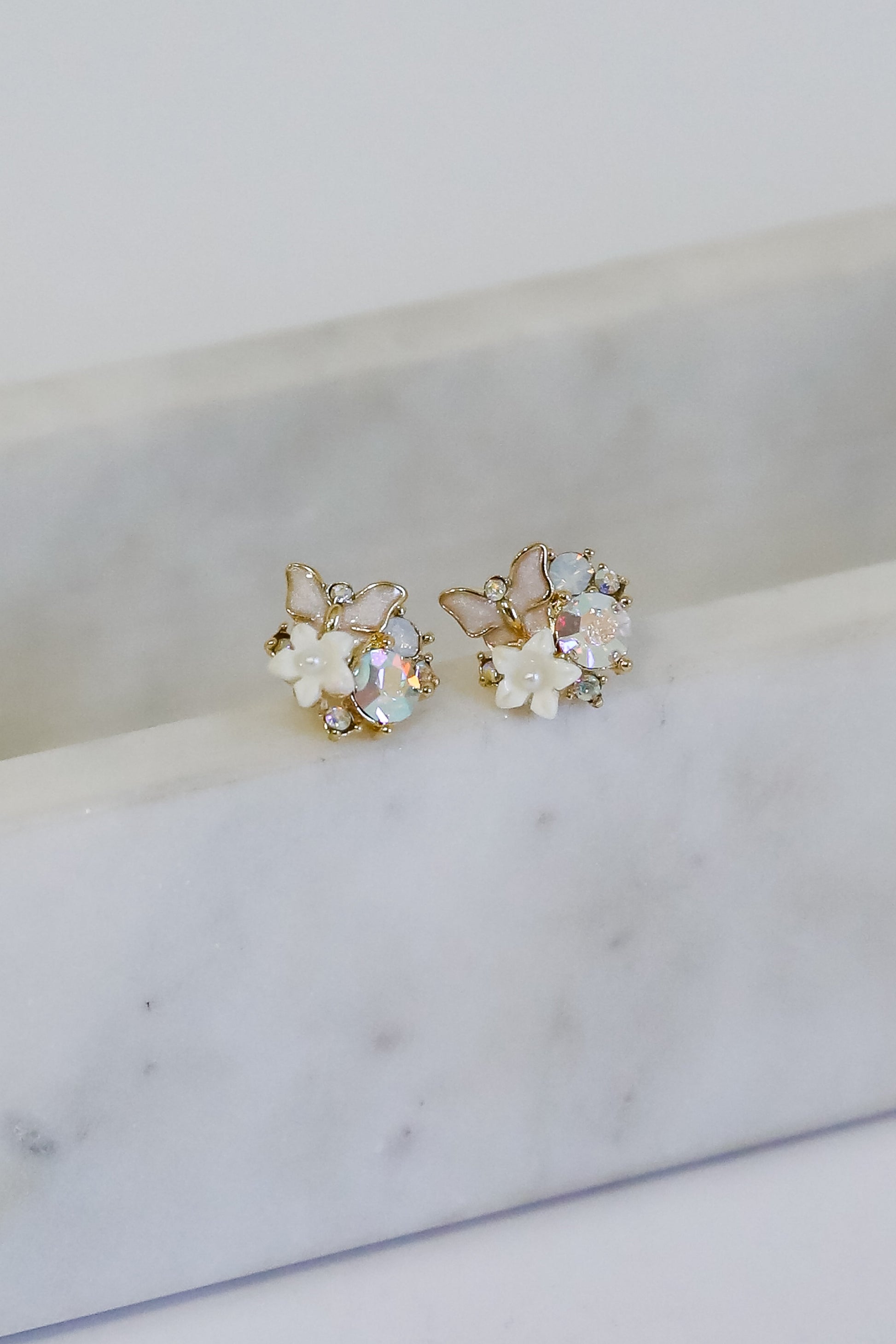 FINAL SALE - Lilly Gold Floral + Butterfly Stud Earrings