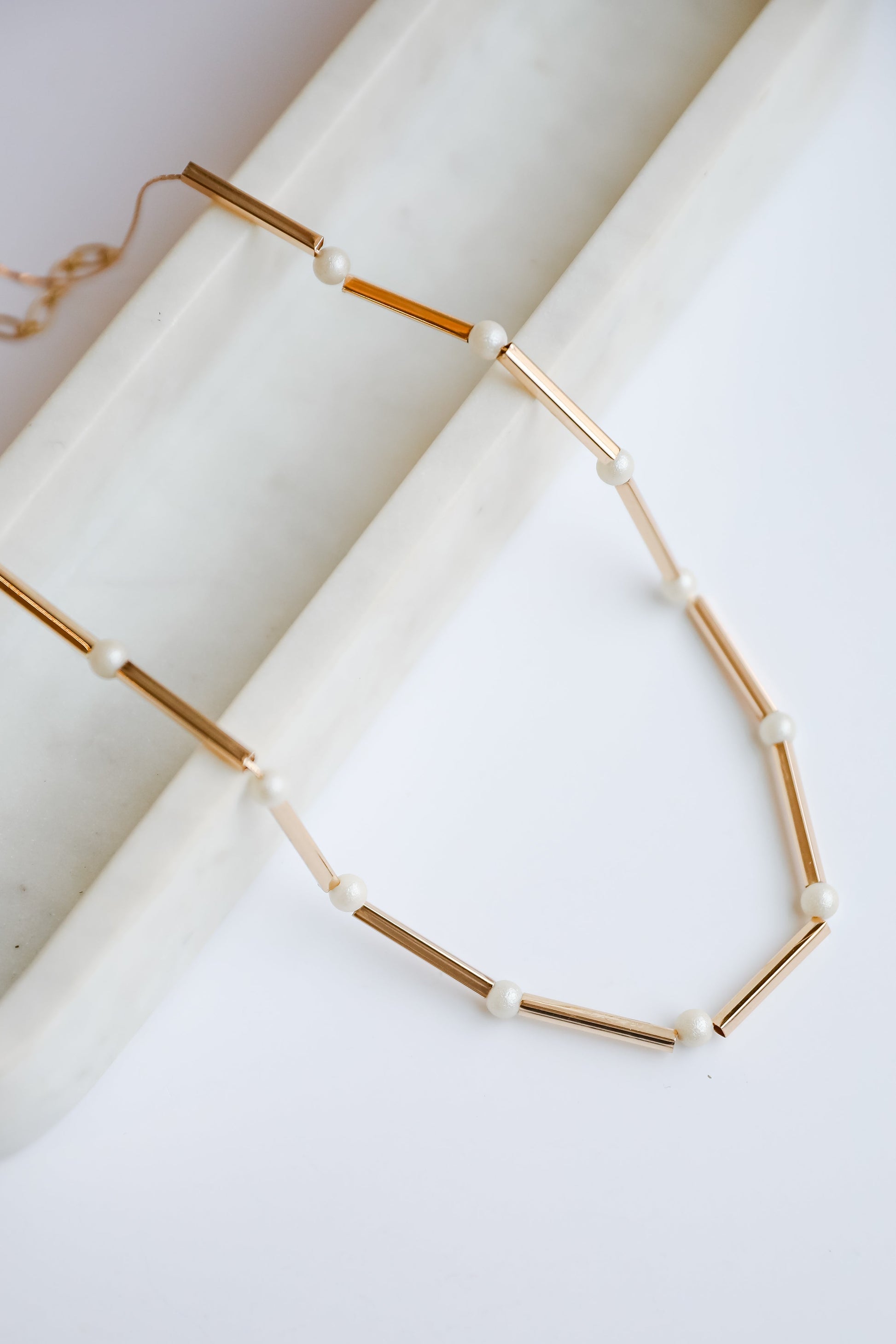 The Lucy Gold Pearl Chain Necklace is here to make your outfit perfect! This dainty necklace features a gold chain with pearls. Style the Lucy Necklace with any outfit to instantly upgrade your look!