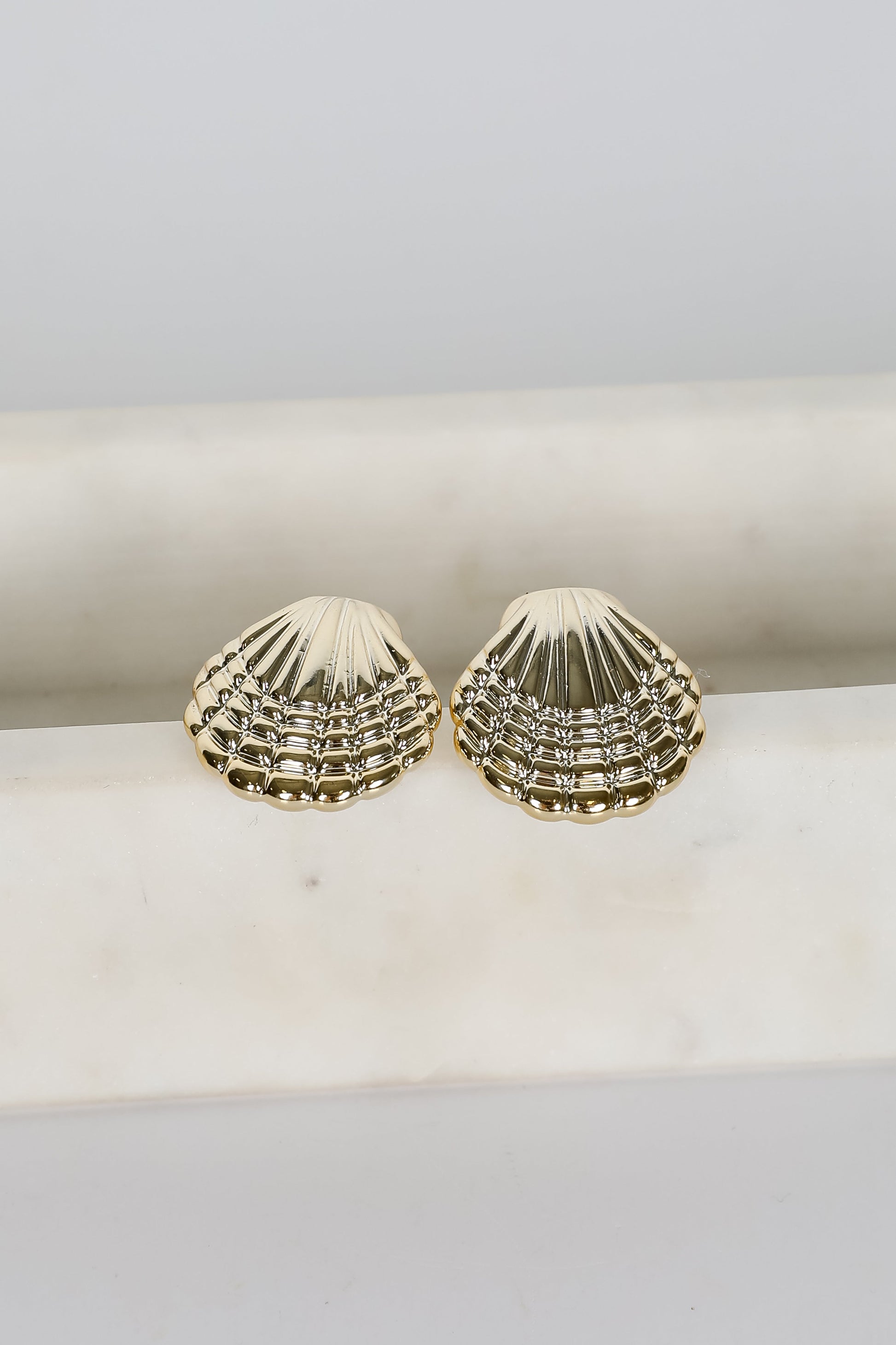 Make any ensemble a true treasure to behold with the Meredith Gold Seashell Stud Earrings! These trendy earrings are designed with a seashell shape and a stud post back. Add these cute earrings to a maxi dress + sandals to add a beachy touch to your look!