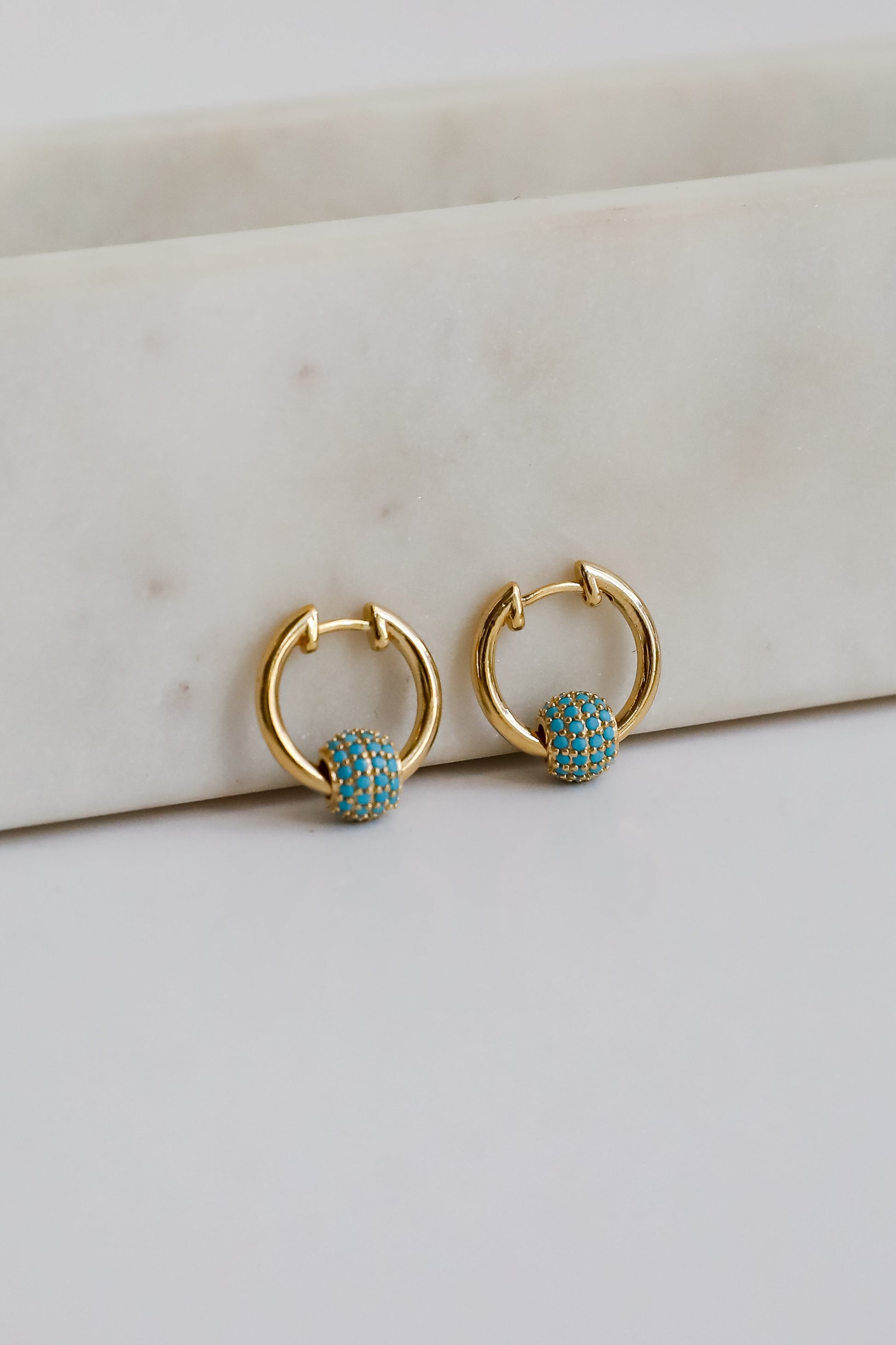 The Molly Gold Mini Hoop Earrings will be the perfect delicate addition to any chic ensemble! These cute earrings feature a huggie hoop design with a blue stone charm + a lever back! Style the Molly Earrings with any outfit for an elevated look!