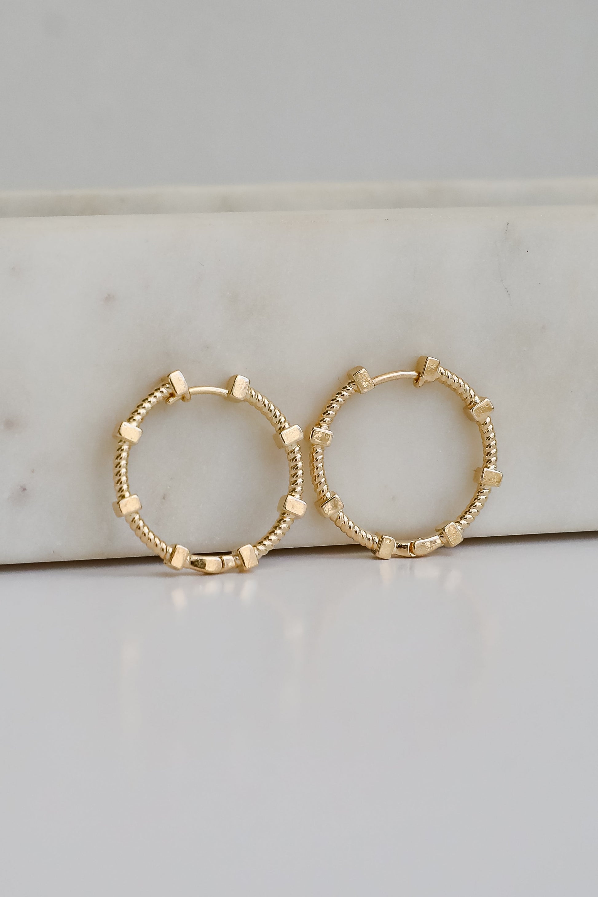 Add a sophisticated twist to any 'fit with the Penelope Gold Textured Hoop Earrings! These chic earrings feature a lever back with a textured hoop design. Style the Penelope Earrings with anything from dresses to denim for an elevated look!