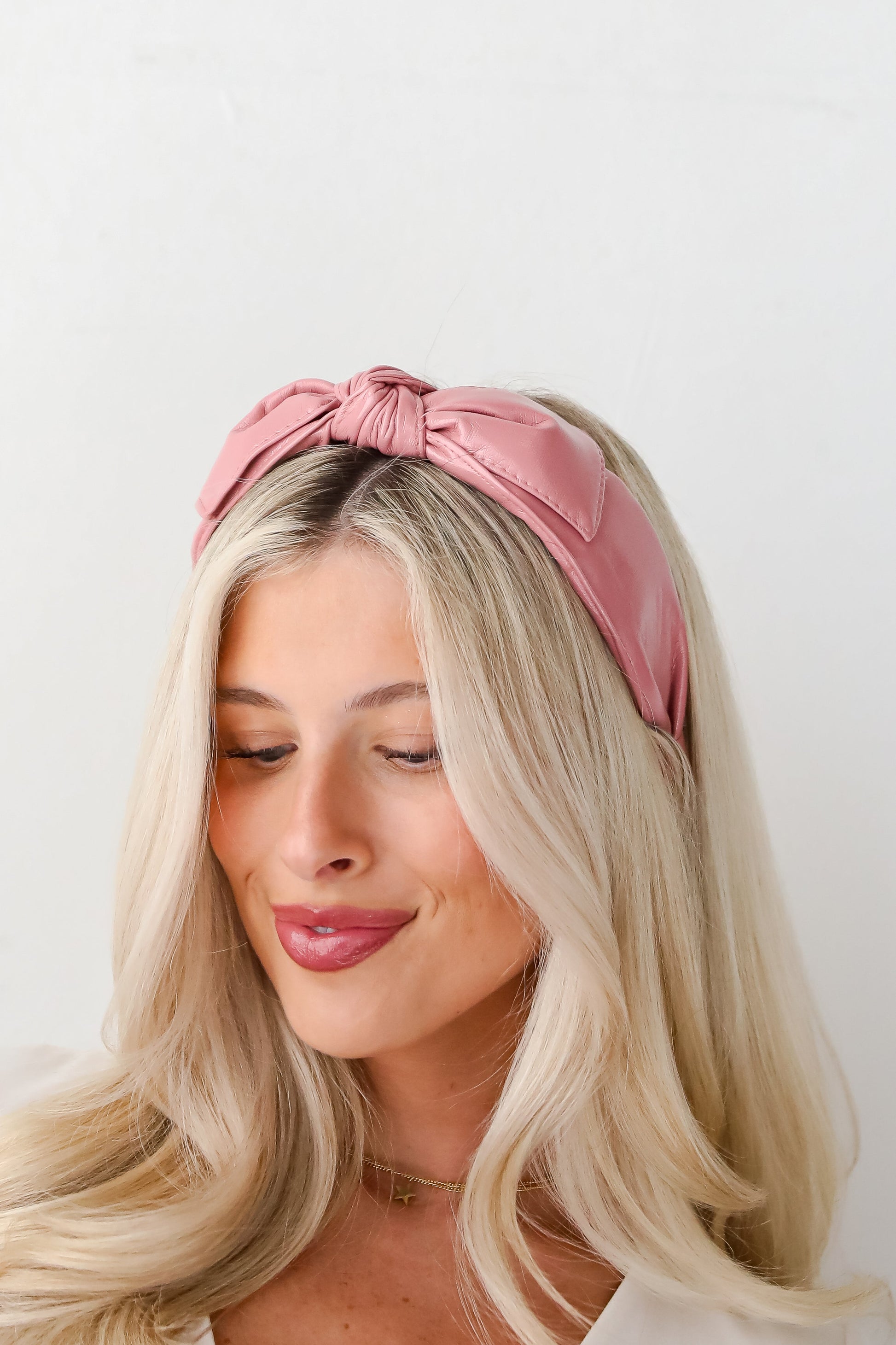 Give your hairstyle a little love with the help of the Poised Finish Leather Bow Headband! This adorable headband is designed with a soft faux leather with a bow detail on the top. Whether you wear it with your favorite little black dress or a classic ribbed bodysuit with denim. either way you're bound to look darling! Available in 2 colors.