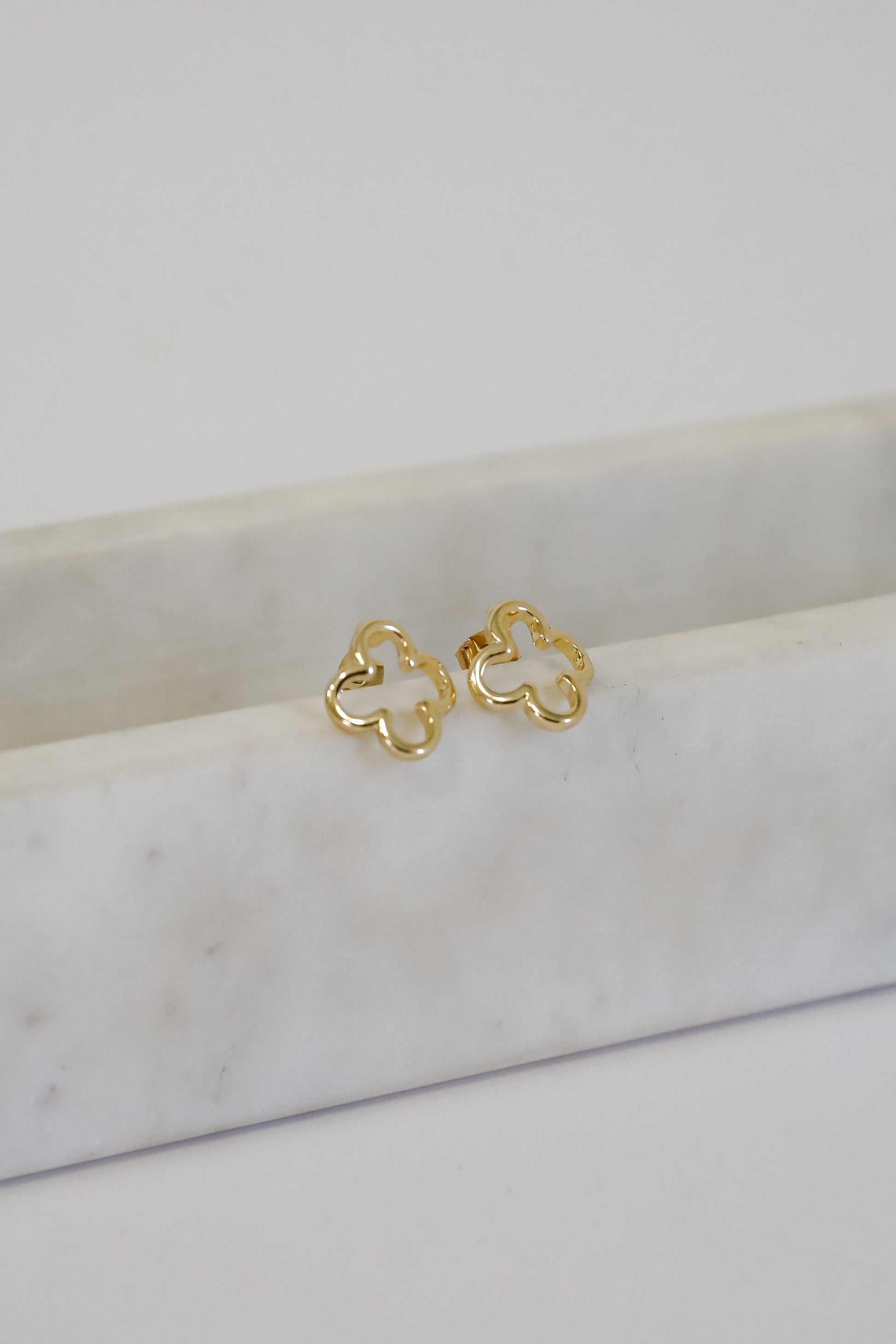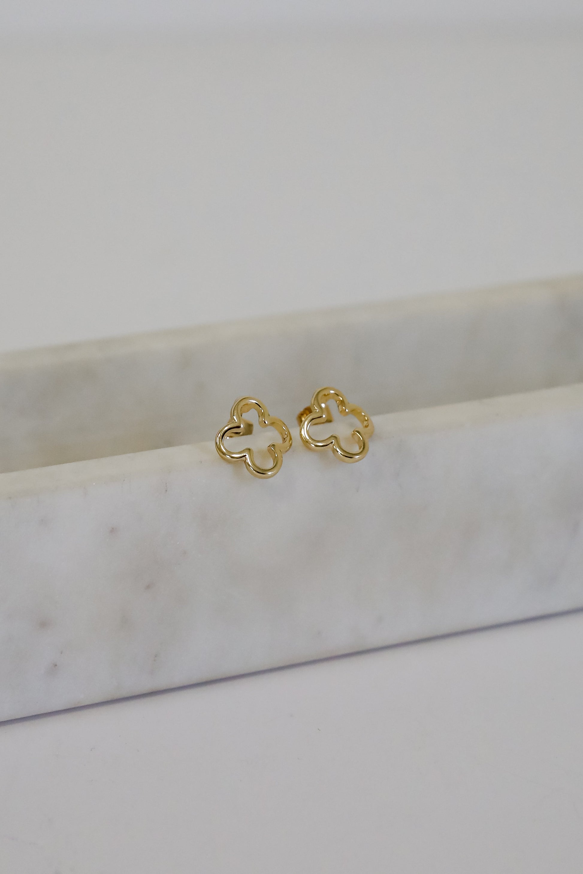 The Rachel Gold Quatrefoil Stud Earrings are all you need to leave the right impression anywhere you go this summer! These trendy earrings are designed with a quatrefoil shape with a stud post back. Add these cute earrings to a black dress + heels to add a girly touch to your date night look!