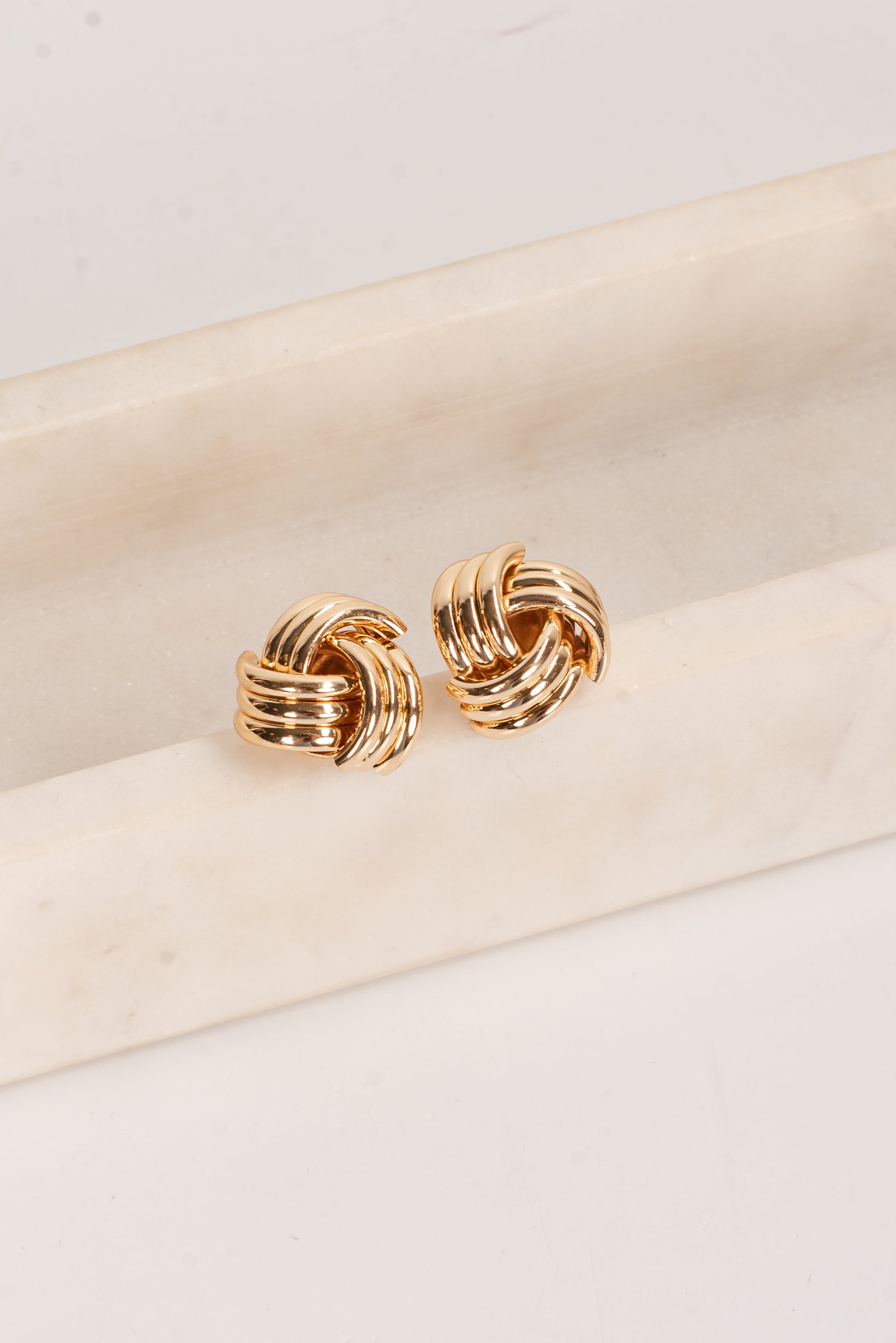 Exceptional at demanding attention. the Reagan Gold Knot Stud Earrings can't help but make the most fabulous statement every time you style them! These trendy earrings are designed with a knot shape + stud post back. Add these cute earrings to a black dress + heels to add a girly touch to your date night look!