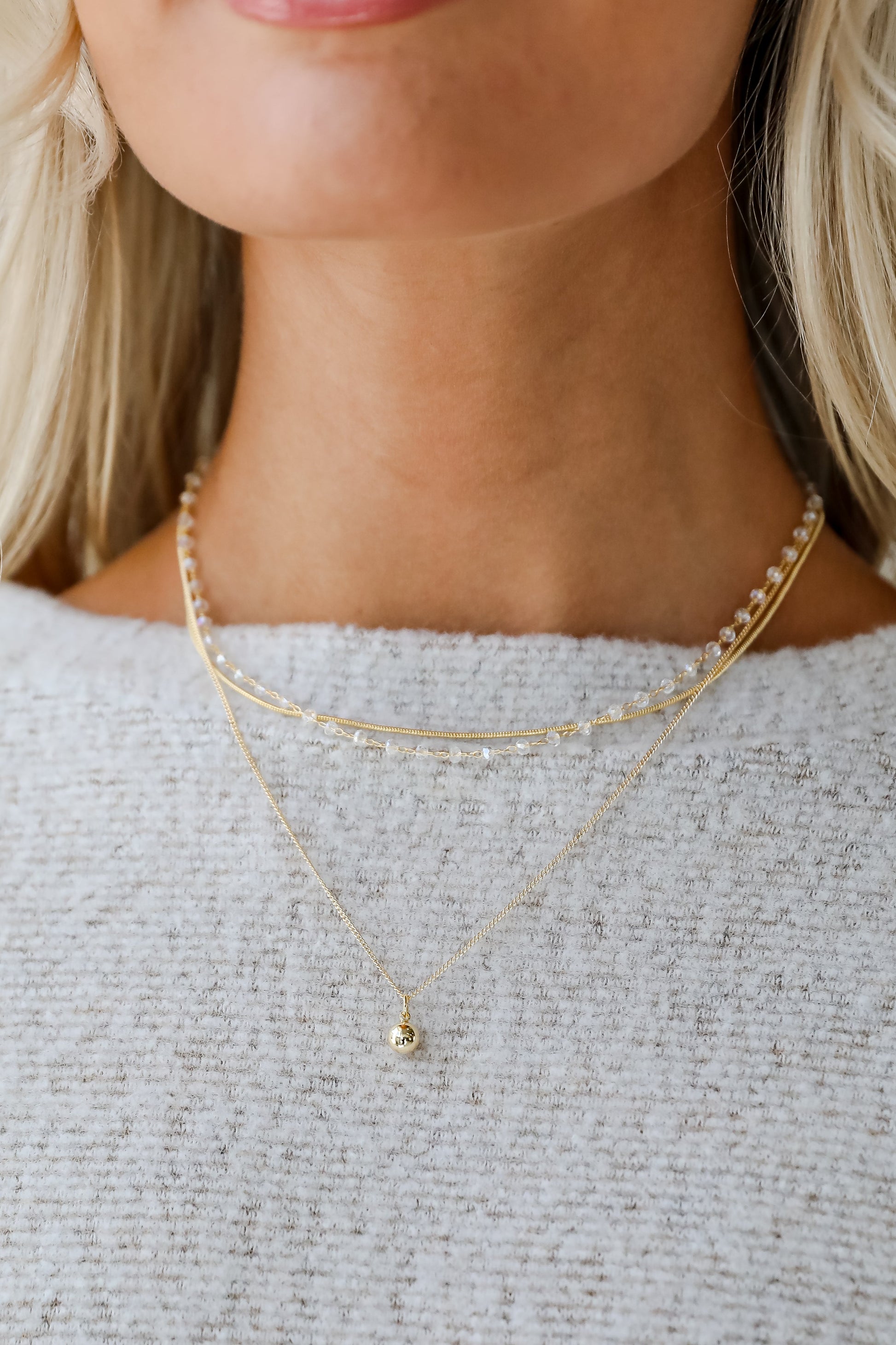 Special occasions were meant for wearing the Reagan Layered Chain Necklace! This trendy necklace features three layers of gold chains with beads & a ball charm on the end. Style the Reagan Necklace with any outfit to instantly upgrade your look! Available in 2 colors.