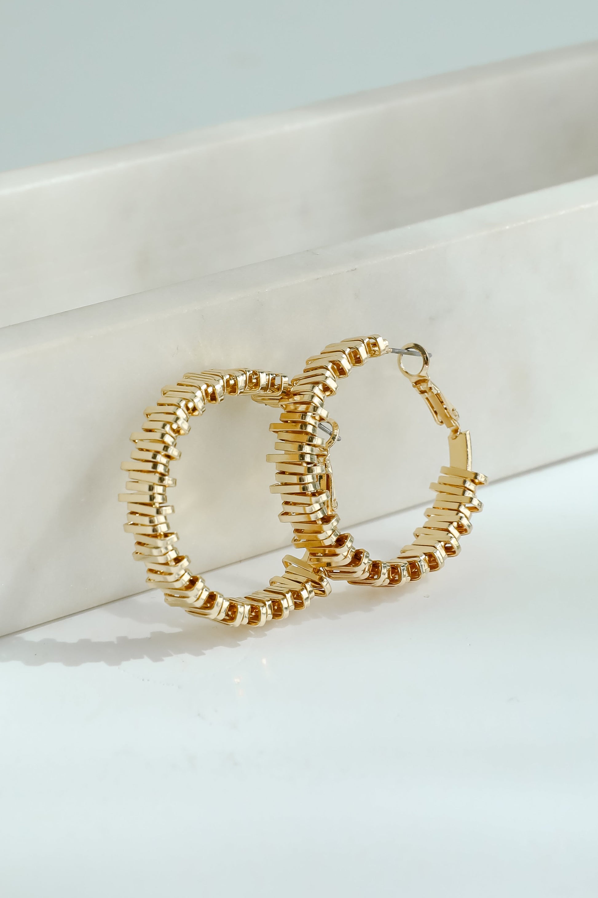 Perfect for impressing everyone you meet. the Ruth Textured Hoop Earrings will easily elevate your evening! These chic earrings feature a lever back with a textured hoop design. Style the Ruth Earrings with anything from dresses to denim for an elevated look! Available in 2 colors.