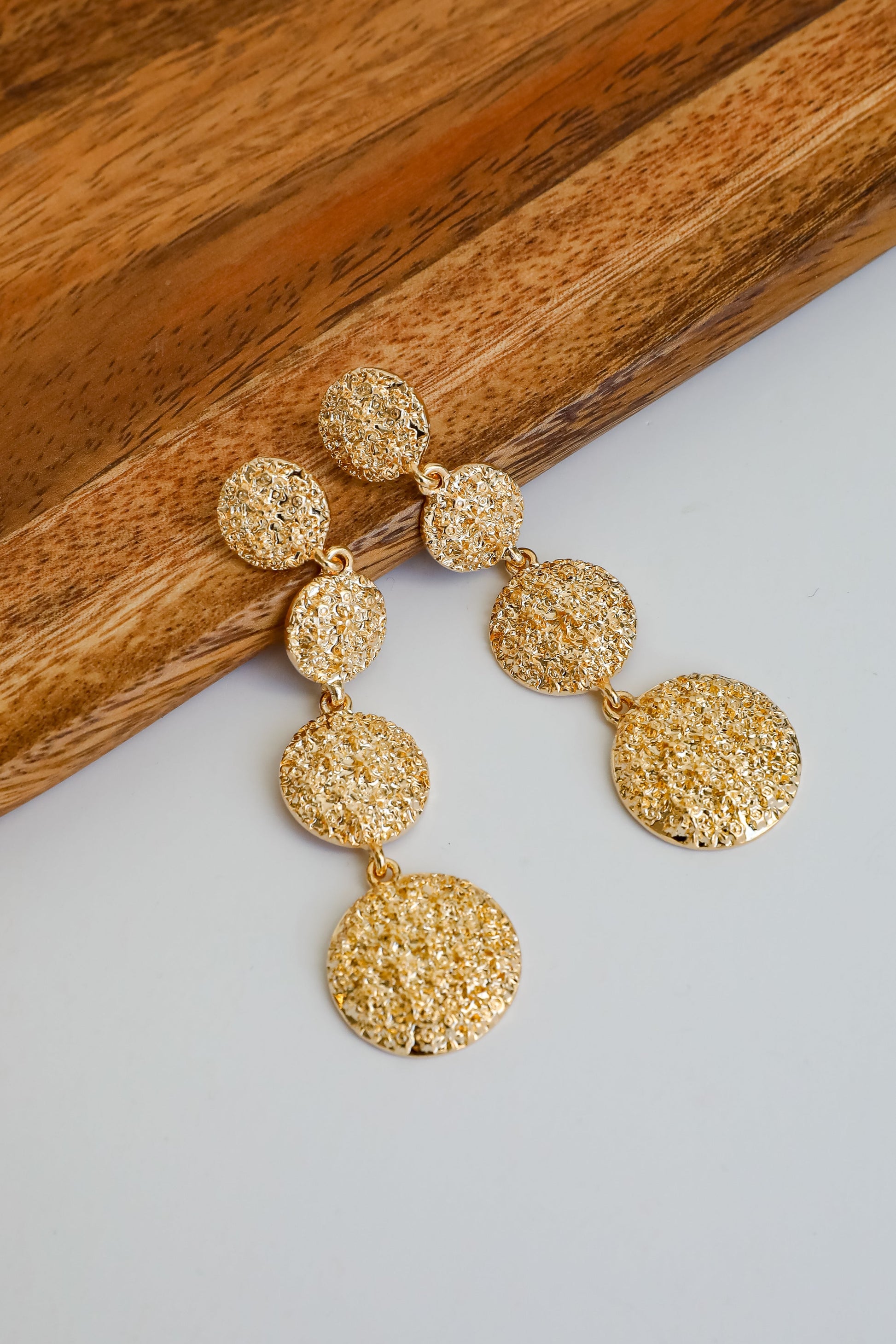 As they say. good things come in threes. and that's exactly what you'll get with the Sarah Gold Textured Drop Earrings! These cute gold earrings feature a textured drop design with a stud post back! Style the Sarah Earrings with any outfit to instantly upgrade your look!