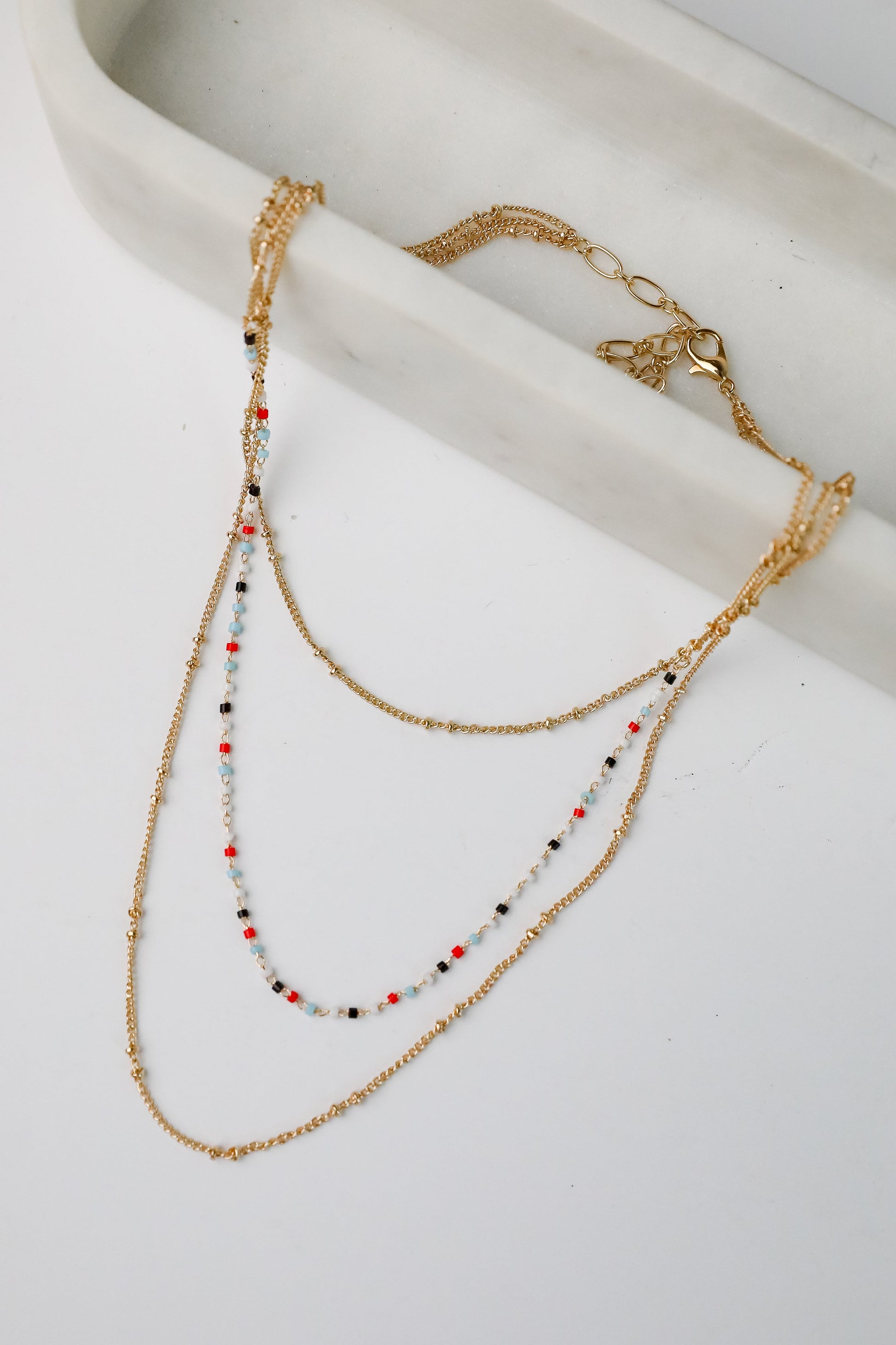 The Sophie Multi Beaded Layered Necklace is the chic accessory you'll take with you wherever you go! This trendy necklace features three layers of gold chains with multicolored beads. Style the Sophie Necklace with any outfit to instantly upgrade your look!