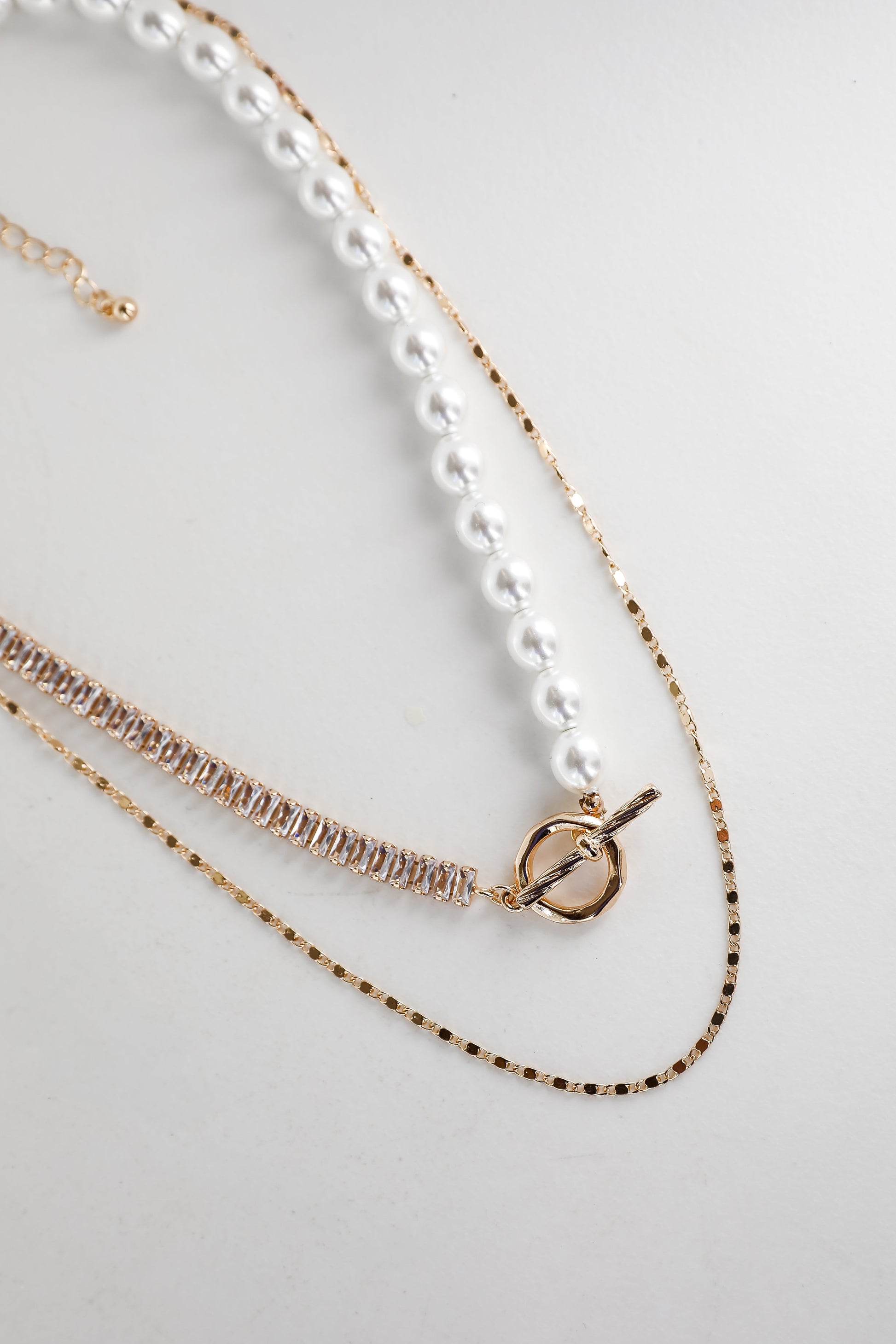 FINAL SALE - Stella Gold Rhinestone Pearl Layered Necklace
