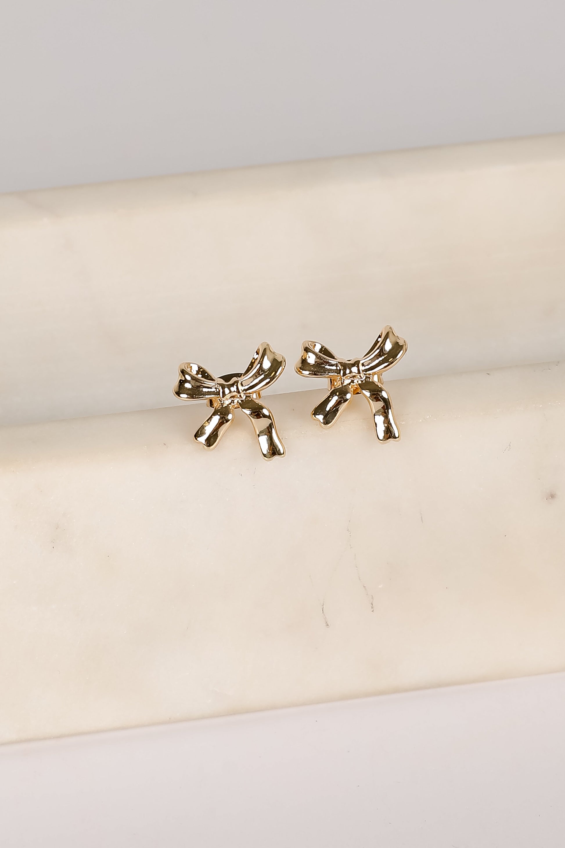 The Stephanie Gold Bow Earrings always call in compliments! These trendy earrings are designed with a bow shape + stud post back. Add these cute earrings to a black dress + heels to add a girly touch to your date night look!